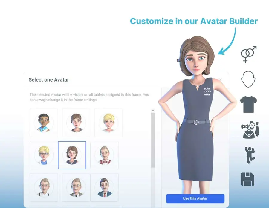 Eye-catching, life-size presentation of avatars with 3D effect.